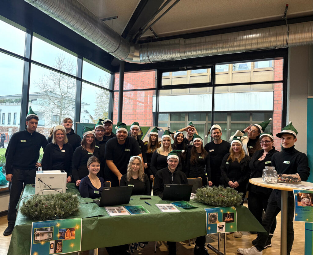 Am 26. November besuchten die Klassen 11 BÜ und 11 BFS das Berufskolleg Schloss Neuhaus in Paderborn. Dort nahmen wir an einer Nikolausmesse für Übungsfirmen teil. Gemeinsam mit anderen Übungsfirmen aus verschiedenen Schulen hatten wir die Möglichkeit, unsere eigenen Produkte zu verkaufen und an den Ständen der anderen Firmen einzukaufen. Jede Übungsfirma bot unterschiedliche Produkte an. Wir präsentierten Gartenartikel. Andere Firmen verkauften zum Beispiel Musicalreisen, Schuhe oder Getränke.