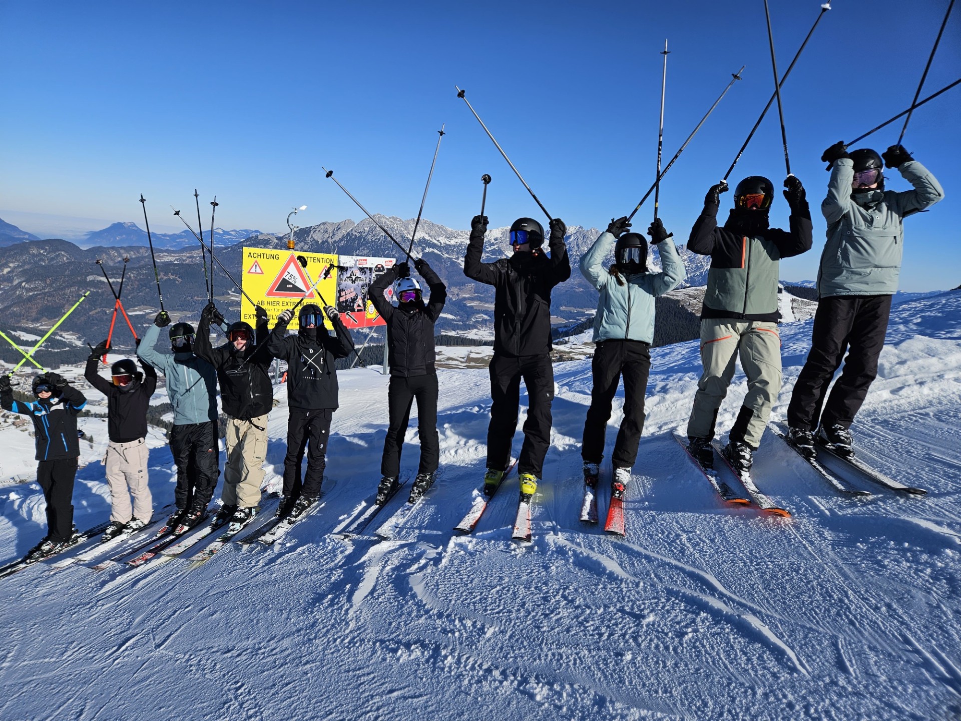 Strahlender Sonnenschein, gut präparierte Pisten und jede Menge Spaß – die Skiexkursion der Sportleistungskurse zum Wilden Kaiser war ein voller Erfolg. 42 Schülerinnen und Schüler der Q1 und sechs Lehrerinnen und Lehrer verbrachten eine unvergessliche Woche in den Alpen und kehrten mit tollen Erinnerungen und beachtlichen Lernfortschritten zurück.