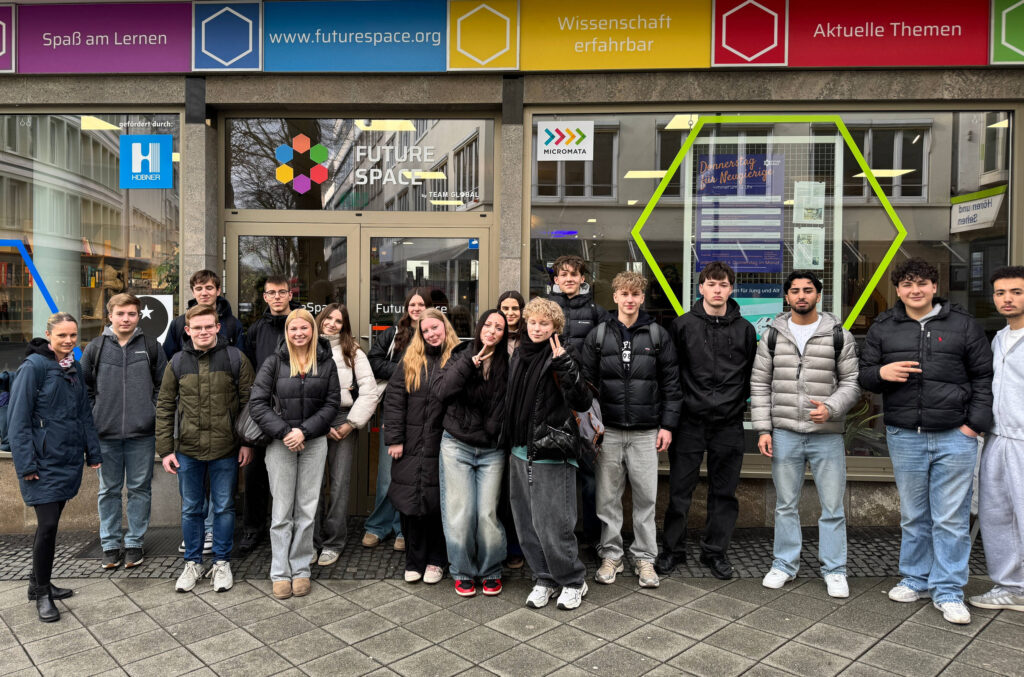 17 Schülerinnen und Schüler des Chemie-Leistungskurses der MSO nahmen am LK2 Tag an einem besonderen Modul im Future Space in Kassel teil, das ihnen einen neuen, spannenden Zugang zur Welt der Chemie ermöglichte. Unter dem Motto „Das Periodensystem erleben mit Virtual Reality und Augmented Reality“ stand das praxisnahe Entdecken der Elemente und des Atombaus im Mittelpunkt.