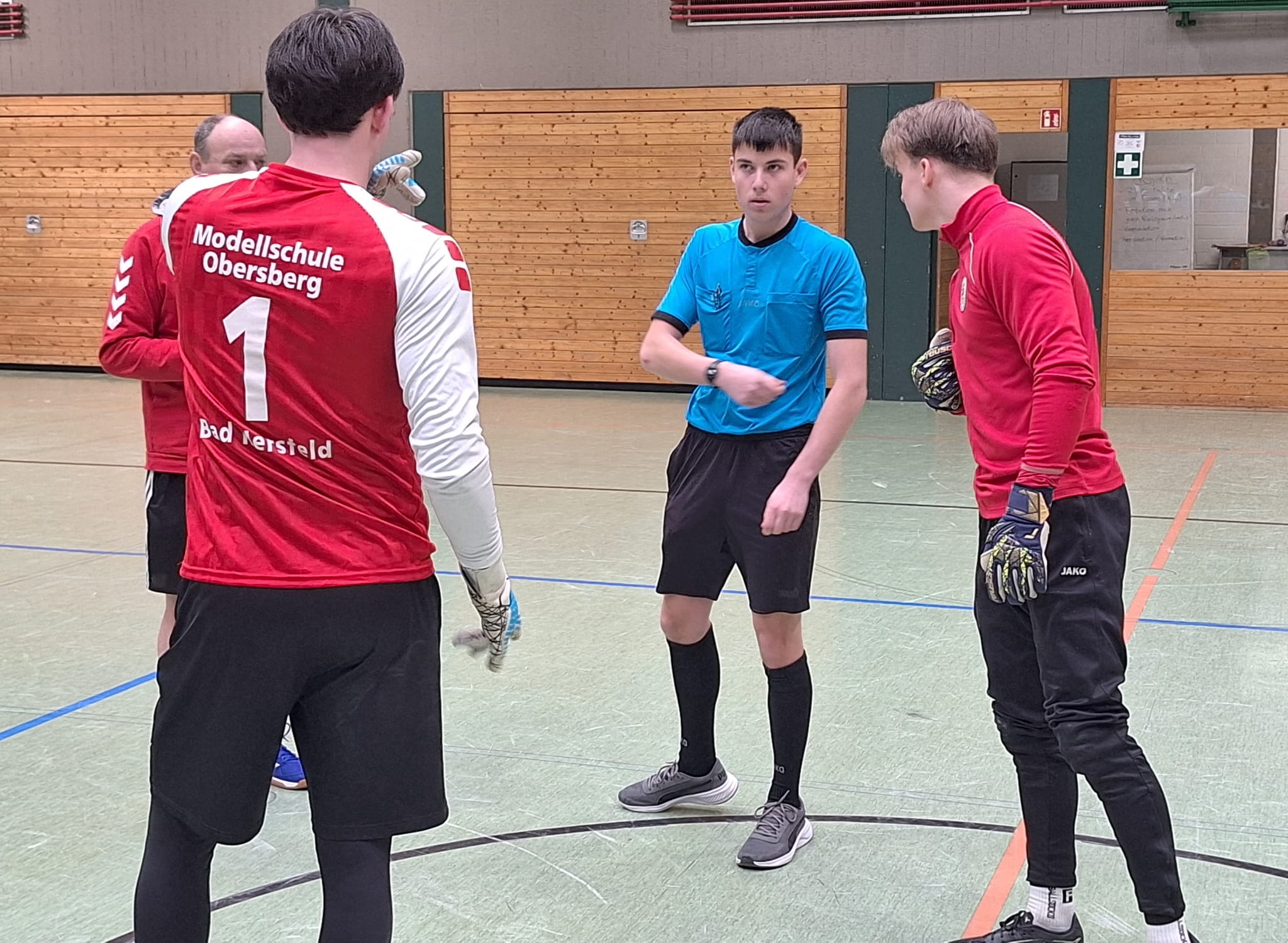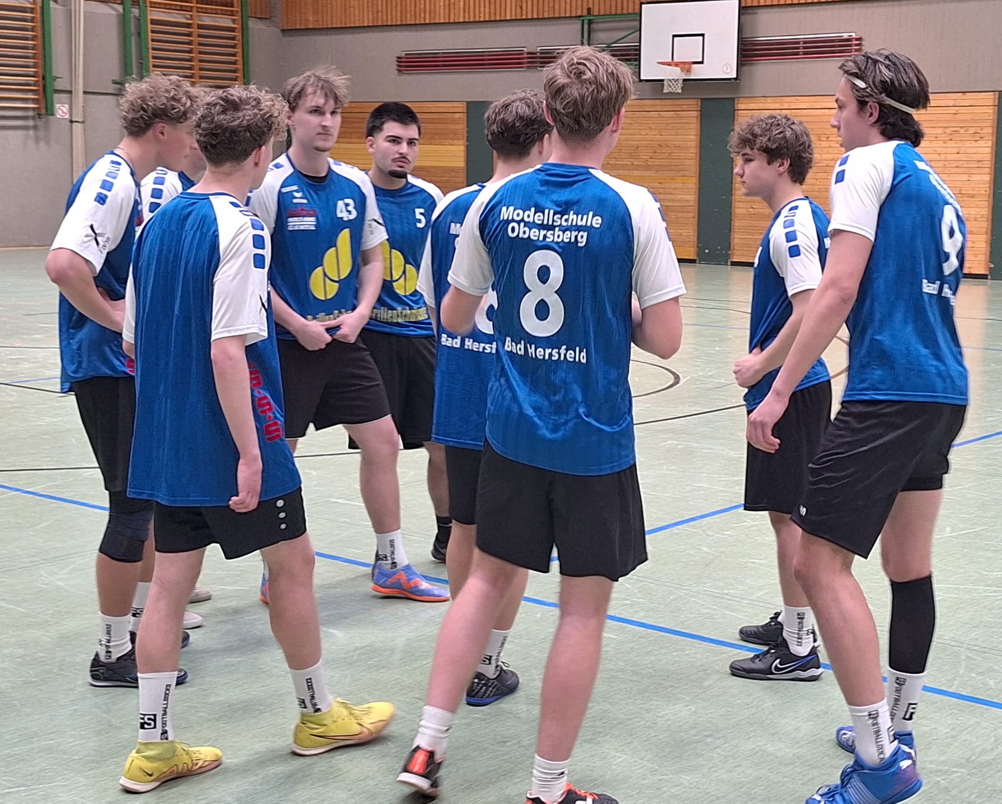 Die erste Mannschaft, vorrangig aus dem Abiturjahrgang 2026 bestehend, zog mit 3 Siegen in der Vorrunde, u.a. auch gegen die gastgebende Ferdinand-Braun-Schule, souverän ins Halbfinale ein. Dort wartet dann ausgerechnet die zweite MSO-Vertretung – ein gefühltes „internes“ Finale. Die jüngere E2/Q2 Mannschaft ging zunächst in Führung, der Ausgleich folgte allerdings umgehend. Viel Ehrgeiz, Einsatz und Spannung bestimmten das Halbfinale. Die angehenden Abiturienten wurden weiter voll gefordert und mussten zudem ein zweiminütiges Unterzahlspiel überstehen. Das schafften sie erfolgreich und konnten auch das anschließende Siebenmeterschießen um den Einzug ins Finale für sich entscheiden. Für das jüngere Team blieb am Ende Platz 3, während Team MSO 1 erneut auf die Ferdinand-Braun-Schule traf.