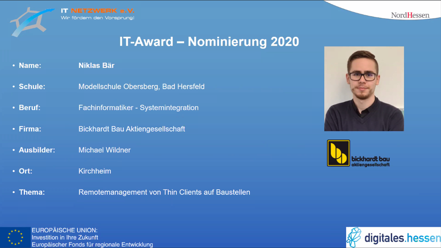 Am 10.11.2020 wurde im Rahmen des IT-Forums Nordhessen der IT Award zum 14. Mal verliehen. Bei dem IT Award handelt es sich um einen Nachwuchswettbewerb ...