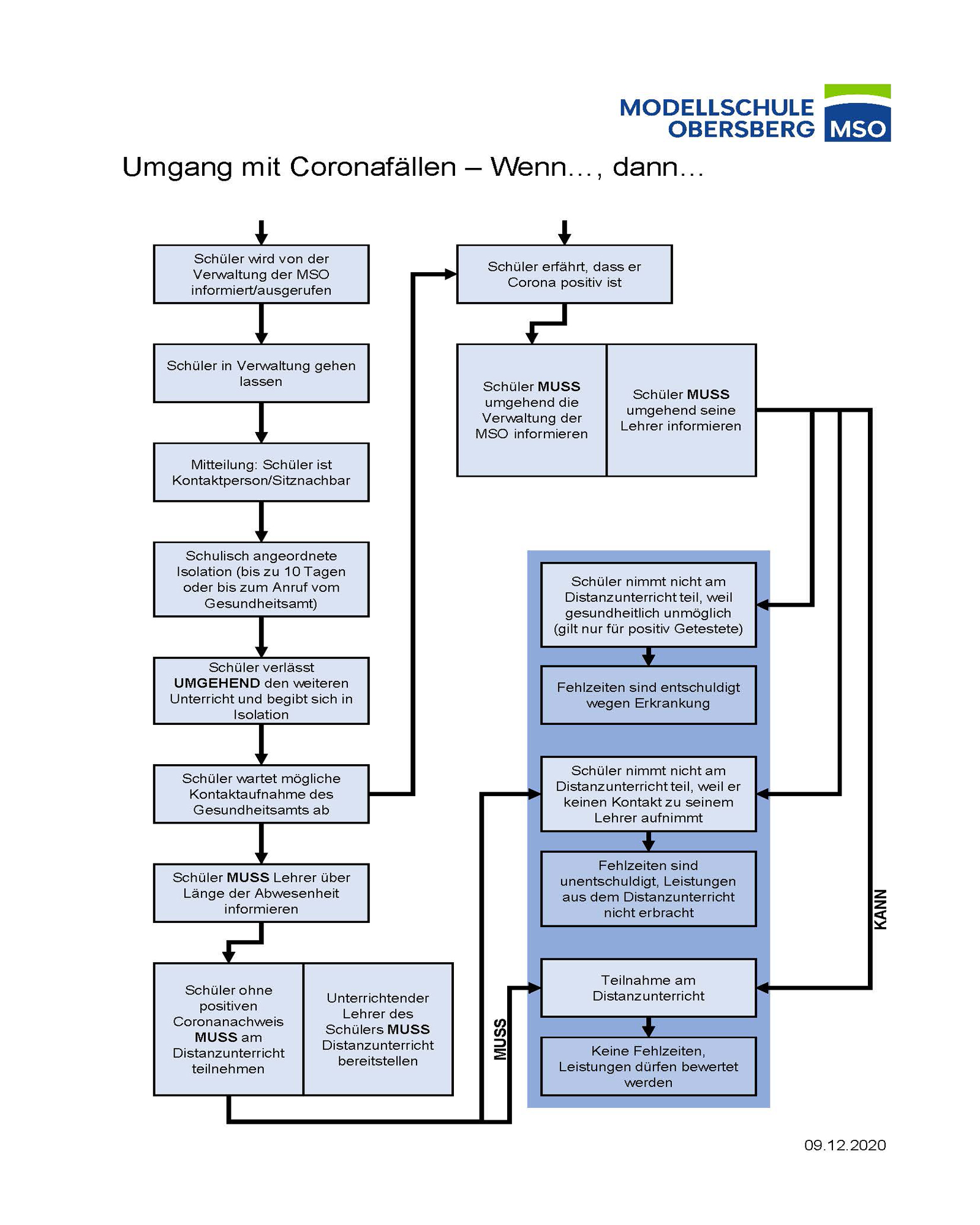 Wichtige Informationen zum Umgang mit Coronafällen an der MSO